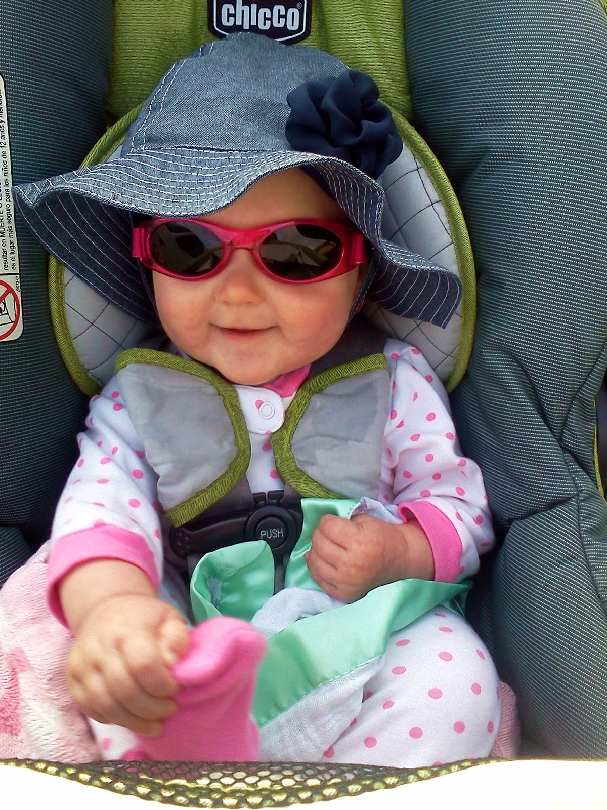 I can't believe it, but Madelyn is offically 6 months old today! Seriously, where is the time going?? We celebrated by introducing a sippy cup and Gerber puffs (she mostly just gnawed on the sippy cup and scooted the puffs around on her highchair tray :) Once the sun finally decided to show its face, we went for a walk and she sported her new hat and shades, super adorable! Then it was time to play with her new animals from grandma and grandpa Gardner! All-in-all, it was a fantastic 1/2 birthday.